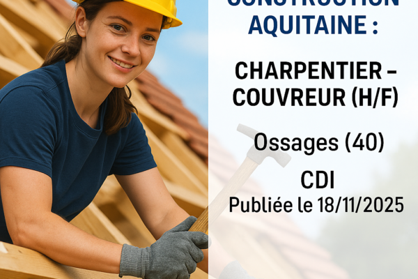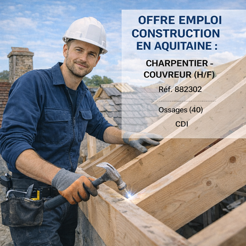 Offre emploi construction aquitaine : Charpentier - Couvreur (H/F) Ossages (40) CDI Description du poste Vous…
