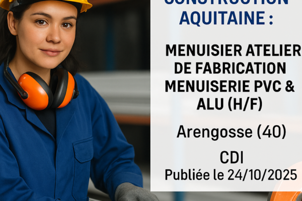 Offre emploi construction aquitaine : MENUISIER ATELIER DE FABRICATION MENUISERIE PVC & ALU (H/F) Arengosse…